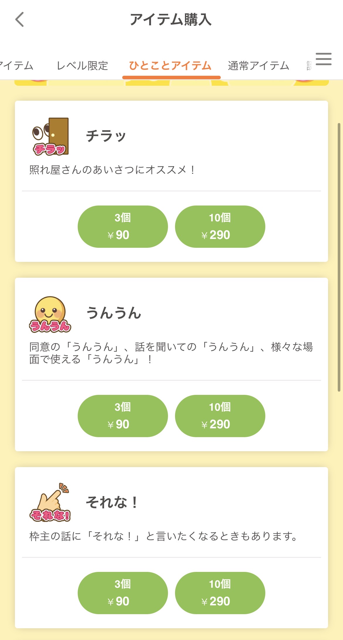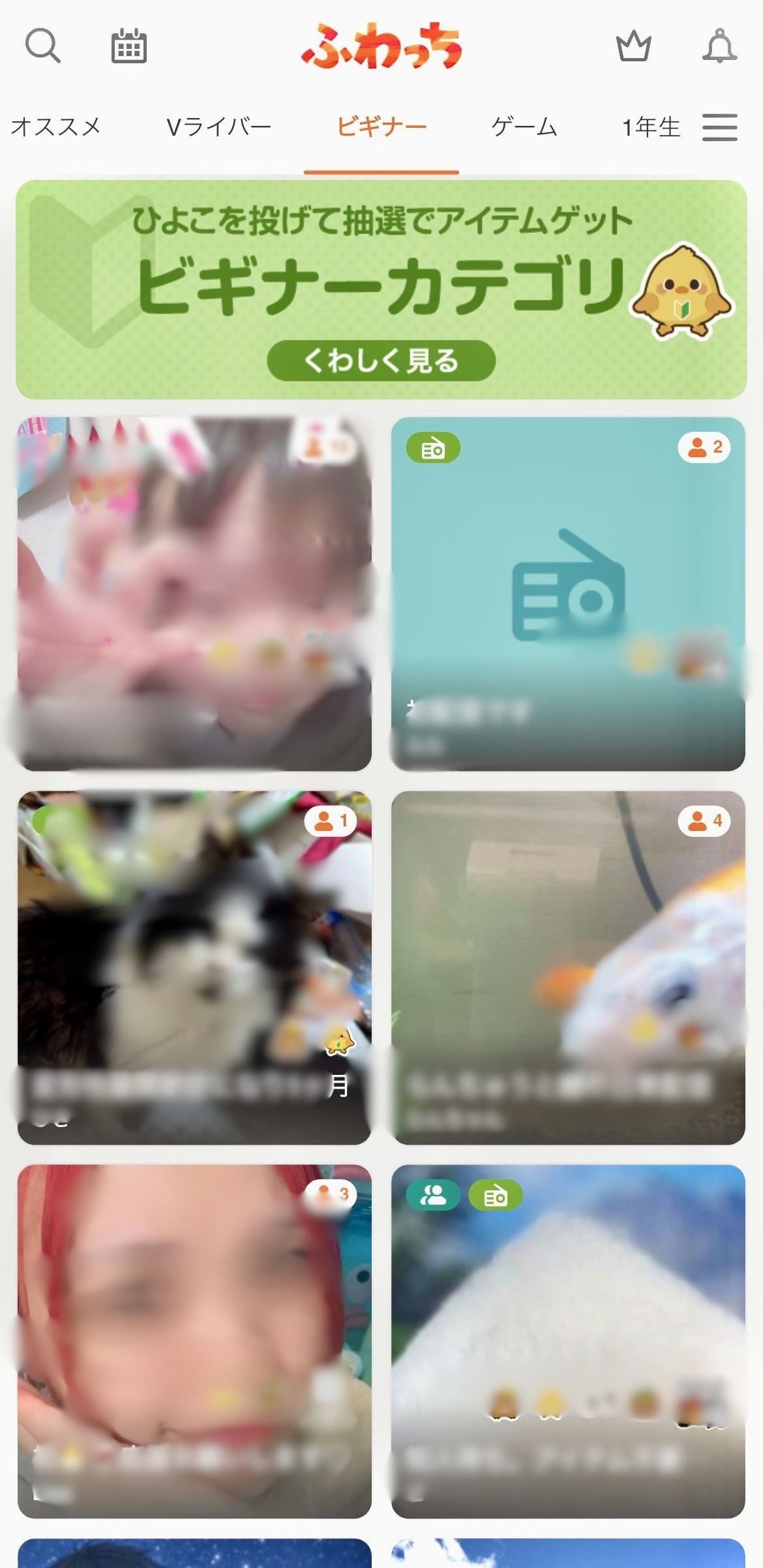 ふわっちは初心者向けに無料の『ひよこアイテム』が存在しています。